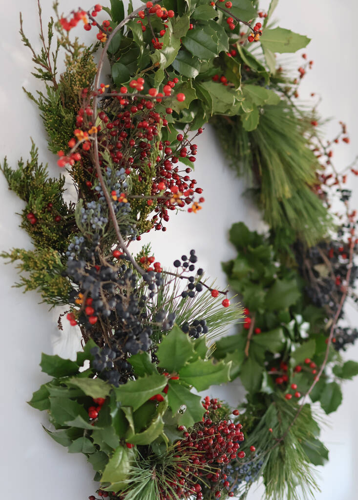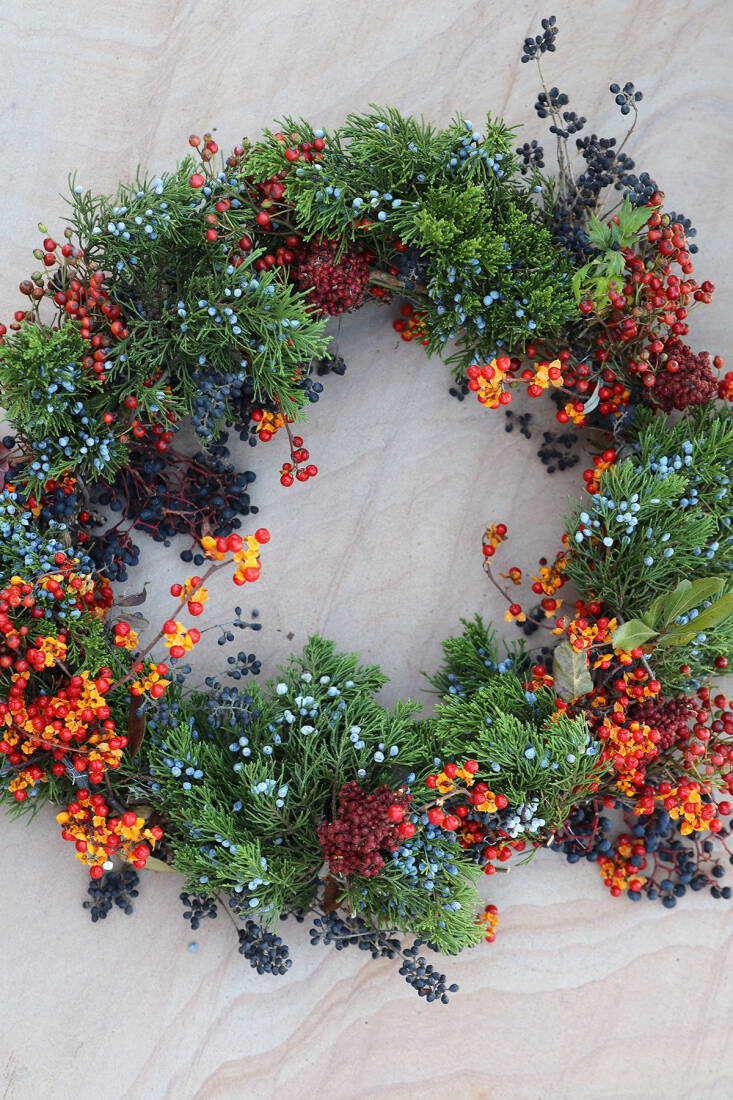 The most effective wreath features plants that stay fresh-looking for weeks. Combining evergreens with winter berries and fruits guarantees long-lasting decoration. The plants can be foraged, if they are invasive, trimmed from your own garden, begged from your friendly neighbors, and bought from local tree vendors. You can also use trimming from your Christmas tree.