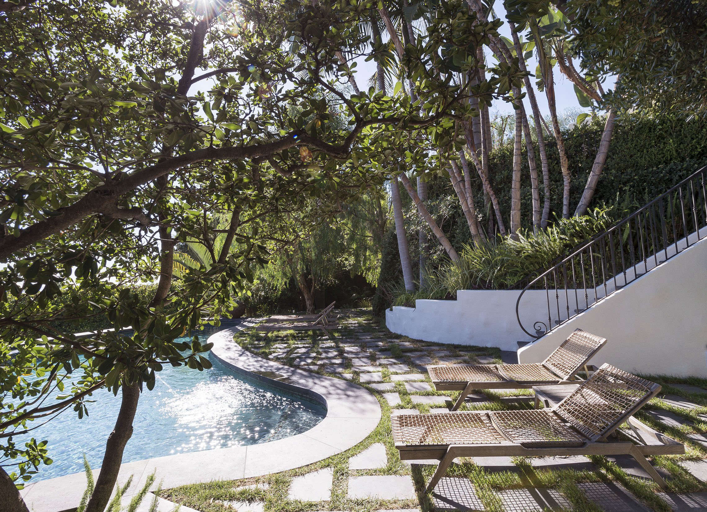 Succulents are a good design choice; they stay green year-round and won’t shed leaves into the water. Choose a planting theme, such as modern or tropical, and of course, keep in mind your existing landscape and home architecture so that all the elements complement one another.